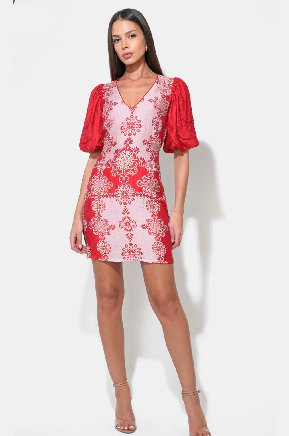 Ruby bubble sleeve mini dress. Lightweight summer dress perfect for day wear or cocktails in the evening .
